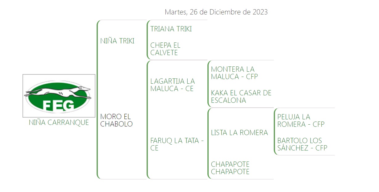 Este año el subcampeonato queda desierto al ser descalificada la galga finalista LEYENDA DE RETUMBA. Recibió, por tanto, solo los trofeos de finalista.