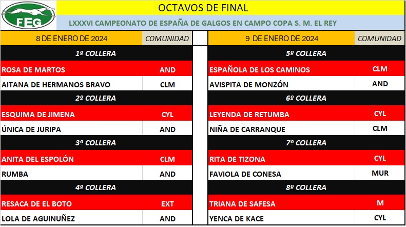 PARTICIPANTES LXXXVI CAMPEONATO DE ESPAÑA DE GALGOS EN CAMPO COPA S.M. EL REY: