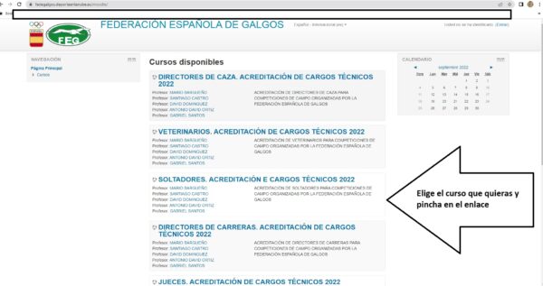 6. Una vez enviados los datos debemos esperar a que desde la FEG (Comité de Cargos Técnicos) nos den de alta (si cumplimos las condiciones) en el curso de acreditación donde queremos inscribirnos.