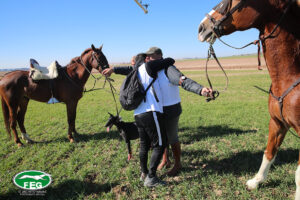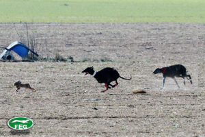 Ahora tocaba esperar y los preparadores hacer su trabajo, intentar que las dos perras llegaran a la siguiente liebre con opciones de competir. A las 13:30 horas la mano se ponía de nuevo en marcha en busca de otra rabona que supusiera el empate de Anita o la victoria de Anika. La misma no se hizo esperar y solo 5 minutos después, era localizada otra liebre en su encame dispuesta a batirse en duelo con las finalistas, que en pocos segundos volaban raudas detrás de ella, para mantener el rito biológico de la caza de liebres con galgos que en este deporte hemos llevado a su máxima expresión.