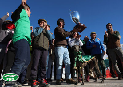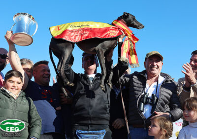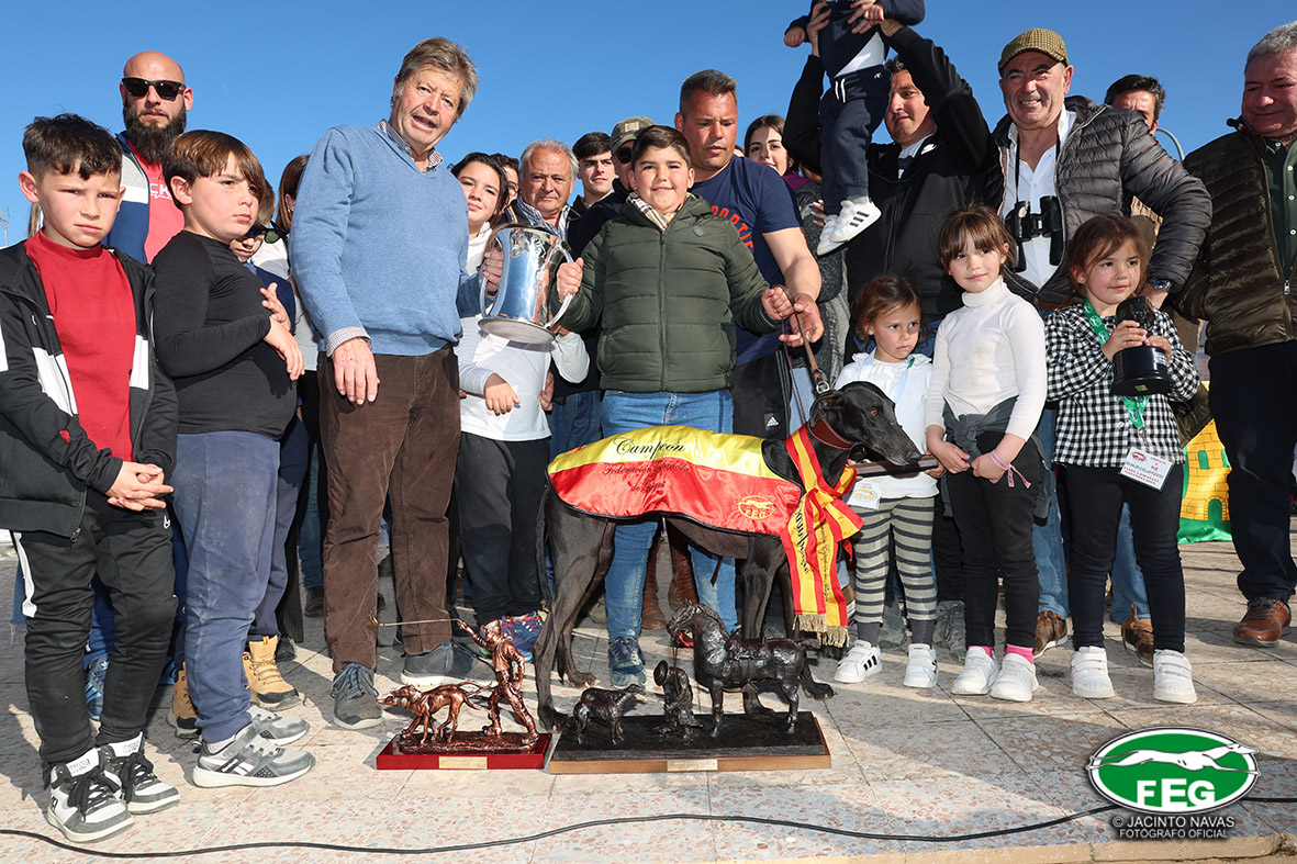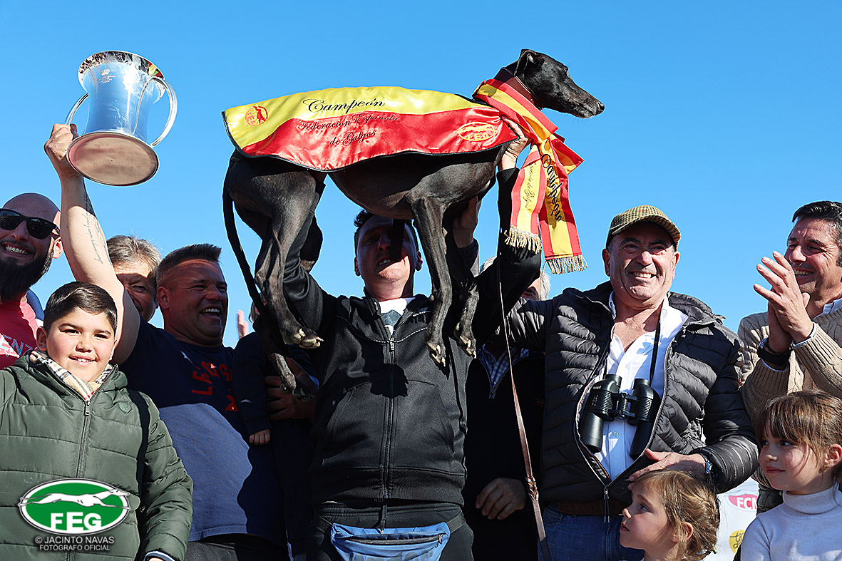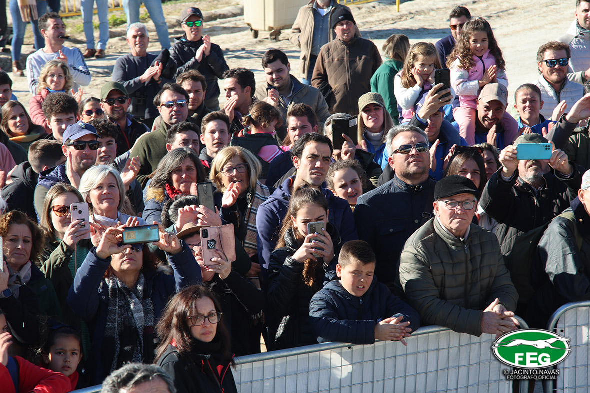 Nada más y nada menos que 2 minutos y 22 segundos de persecución que con dos pañuelos blancos y uno rojo, le daban el título a la lebrijana ANIKA DE PINANTE. Hemos estado, como hemos dicho, ante una de las finales más luchada, de poder a poder, con continuas alternativas en carrera y con unas galgas a la altura de este evento tan multitudinario.