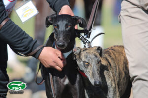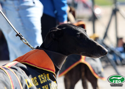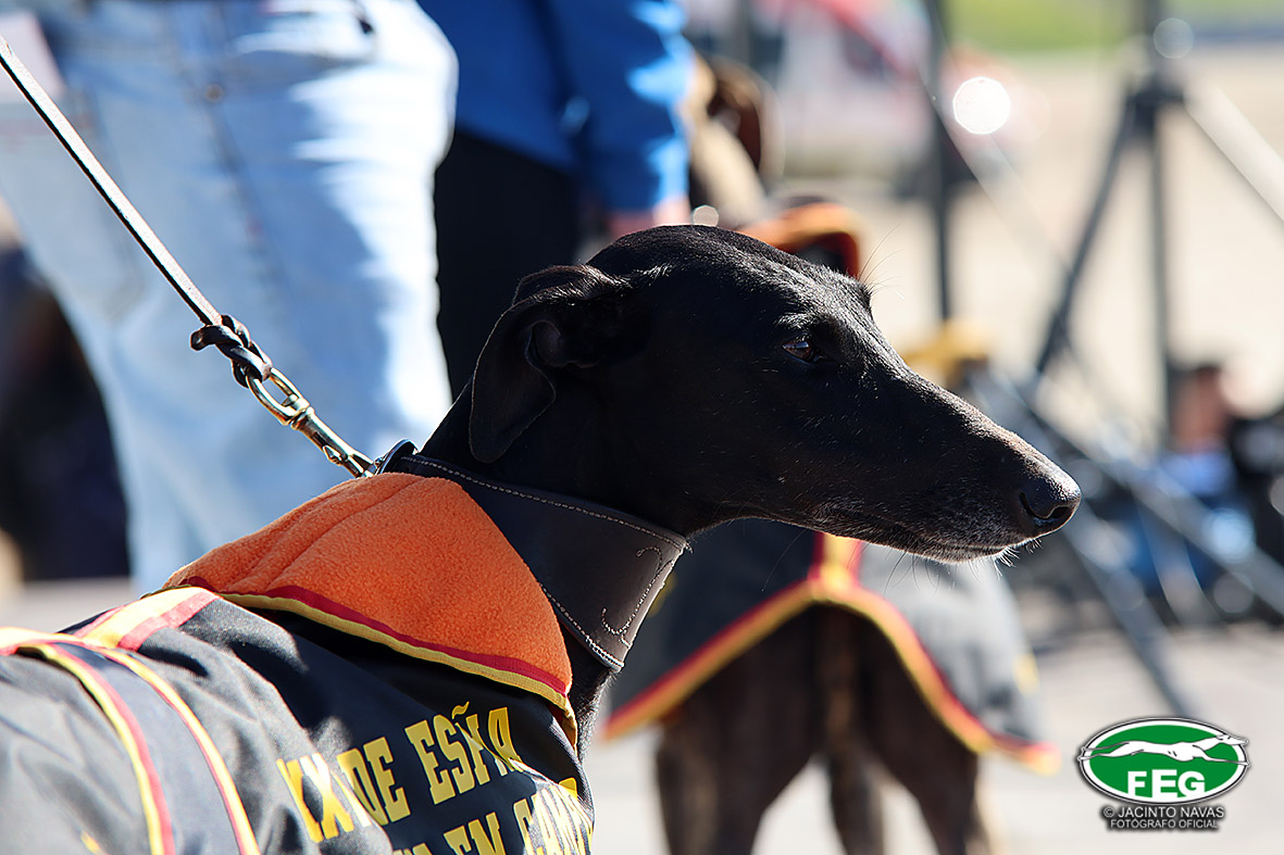 A las 11 horas, hoy si con bastante público, las dos finalistas se ponían en manos de los facultativos, que testaban a los animales y les daban el visto bueno para disputar la gran final. Según palabras textuales de los veterinarios, «han llegado a la final las dos perras que más en forma han estado en el global del campeonato». Seguidamente se pasaba a presentar a las galgas ante la afición. Nuestro speaker oficial D. Oscar Hernández hacía los honores y preguntaba a los propietarios por diversos aspectos de sus pupilas, para que la afición se preparara para vivir un bonito espectáculo y ellos se relajaran un poco antes de vivir algo tan bonito, como es una final de un Nacional de galgos.