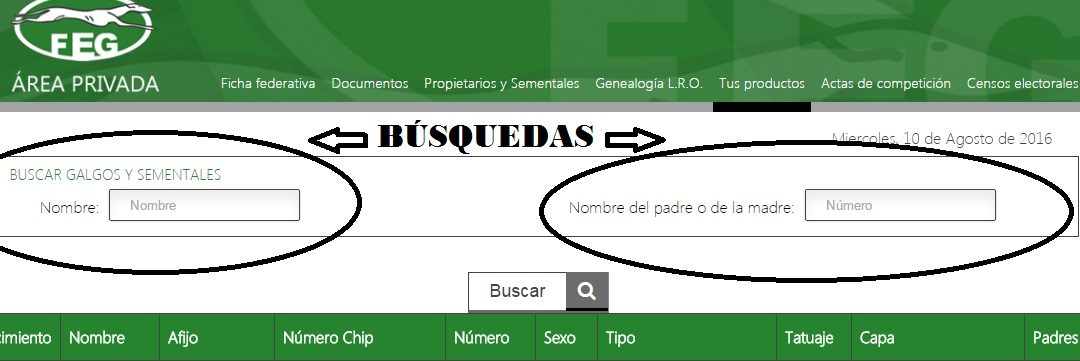 Con la intención de mejorar el programa que gestiona el Libro de Registro de la FEG se han incorporado dos campos de búsqueda en el apartado de «Tus productos» dentro del acceso privado del que disponen todos los federados y que acceden a través de su login y contraseña.
