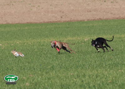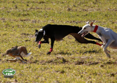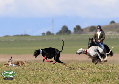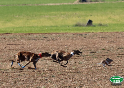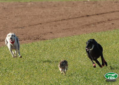 En lo que se refiere a las liebres en el día de hoy, se han corrido un total de 9, de las cuales solo 1 ha sido nula (11%) y por tanto 8 válidas (89%), con un sumatorio total de tiempo de 14 minutos y 39 segundos y que supone la friolera de un tiempo medio por carrera de 1:37 en estos cuartos y que está más cerca del tiempo que arrojaron nacionales de Castilla y León no hace tantos años.