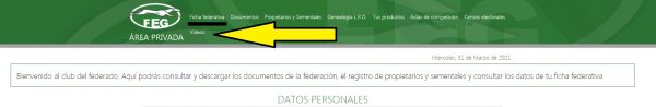 Para poder ver el Nacional del presente año, tan solo deberán entrar con su usuario y su contraseña y verán una pestaña que se denomina vídeos (tal y como vemos en la imagen). Picando en la pestaña correspondiente se podrán descargar las imágenes y disfrutar del Nacional desde cualquier dispositivo.