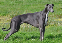 El galgo ingles de pelo corto o Greyhound es un perro de porte aristocrático, altivo y elegante, con una habilidad poco común: alcanza fácilmente los 70 km. en la persecución de la liebre. Desde tiempos muy antiguos se practican las carreras de galgos, la carrera se establece en la persecución de una liebre mecánica el canódromo es de arena con un ancho de 6 a 8 metros y una longitud que va de 350 a 600 metros (máximo admitido para los greyhound). Es un estupendo perro de compañía, de líneas muy elegantes, no se adapta fácilmente a la vida en la ciudad y hay que llevarlo a menudo a lugares donde pueda correr libremente.