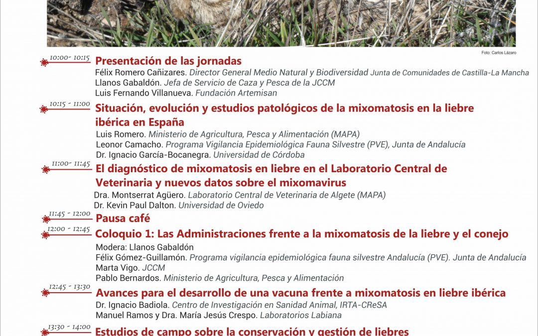 Posteriormente, se celebrará un coloquio sobre el papel de las administraciones frente a la mixomatosis de la liebre y el conejo. Así como una ponencia sobre los avances para el desarrollo de una vacuna frente a esta enfermedad en la liebre ibérica.
