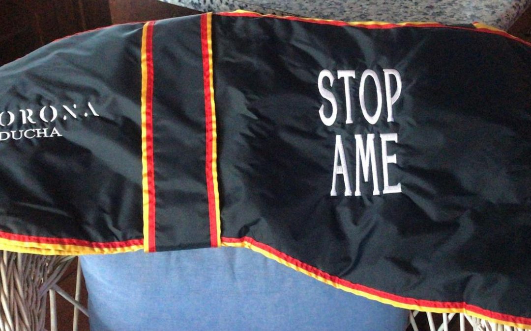 Pues bien, en la fases previas Castellano Manchegas, del Nacional de este año, surgió la bonita iniciativa de crear una MANTA SOLIDARIA que diera visibilidad a la enfermedad, viajando en el galgo ganador de cada una de las eliminatorias hasta conseguir llegar al nacional. La manta comenzó su bonito viaje en el club  Carranque, tomó el relevo Galgueros de Mora ( que la portó dos eliminatorias) y consiguió alcanzar el nacional de este año con ella el club Vaciamadrid, que la ha defendido en las semifinales y en la final.