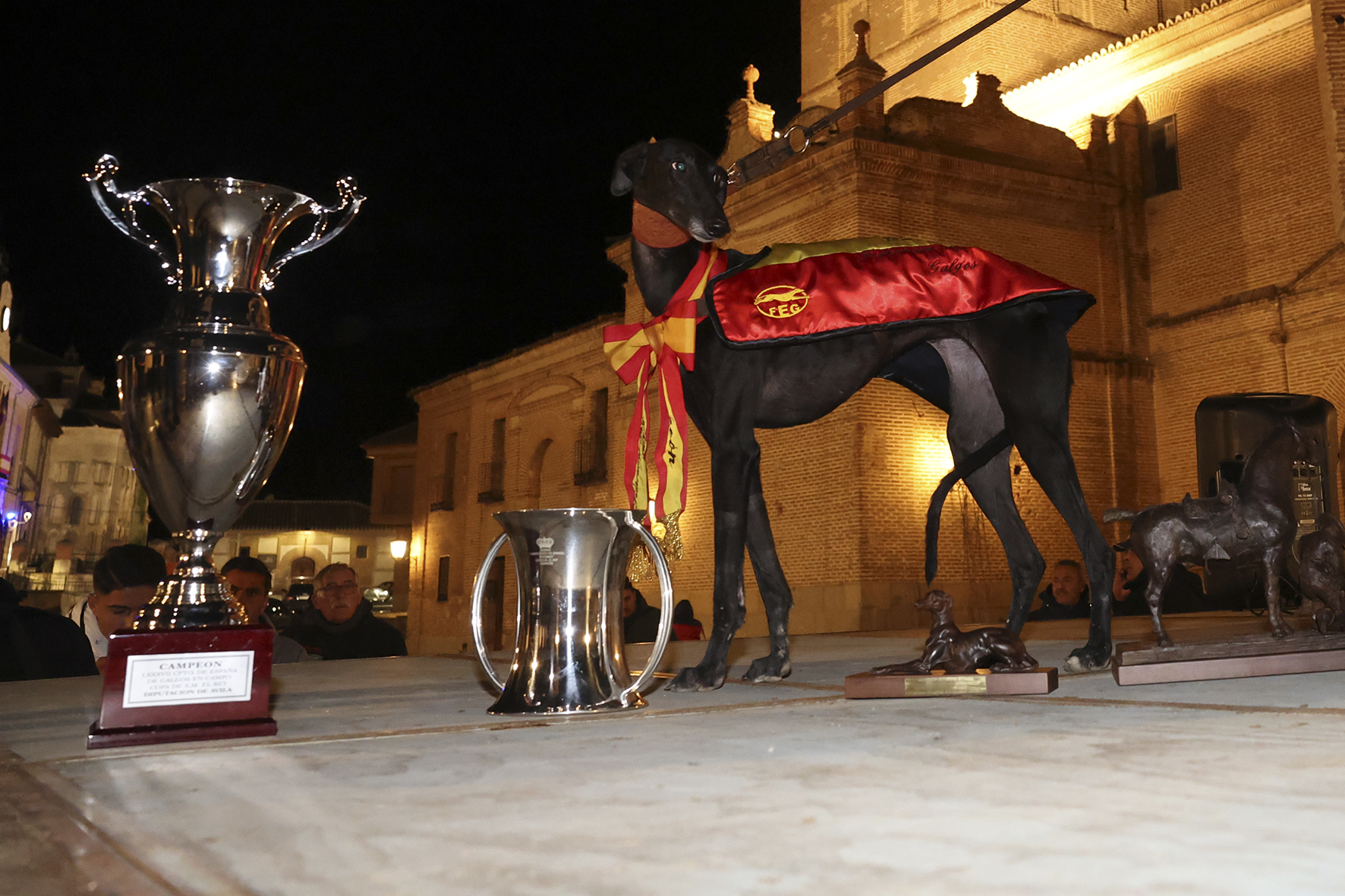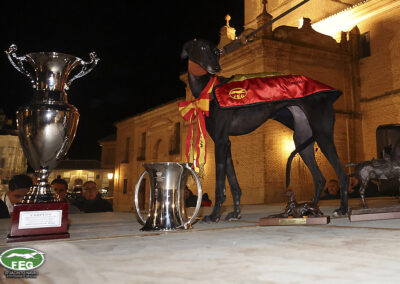 Finalizada la final la comitiva federativa se trasladaba a la Plaza de san Nicolás de la localidad anfitriona para realizar el acto de entrega de trofeos. Las personalidades presentes, hacían entrega de los merecidos trofeos y los reconocimientos a todos los organismos e instituciones que han hecho posible este gran campeonato de España, donde la afición galguera se ha reencontrado con las magníficas liebres de Madrigal y donde pese a la escasez del lepórida han podido revivir tiempos pasados con rabonas de categoría.