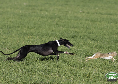 Venía invicta del regional. En el Nacional ha disputado 13 carreras 10 válidas y 3 nula, de las que ha ganado 8 y ha perdido 2. Ha sumado detrás de las rabonas un tiempo de 23:37 lo que supone un tiempo medio por carrera de 1:49. Es la perra más castigada en cuanto a minutos corridos y a la que más le han durado las liebres de este nacional.