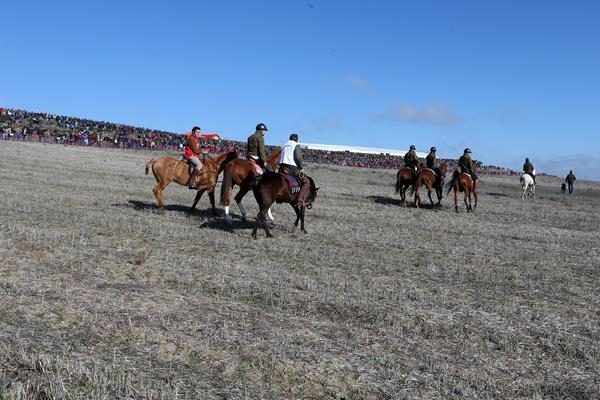La magistral dirección de caza, ha hecho posible que se desaprovecharan muy poquitas liebres hoy y las cerca de 30.000 almas, pudieran ver correr a los galgos a escasos metros de donde se situaba en el balcón de la Cuesta de los Picos.
