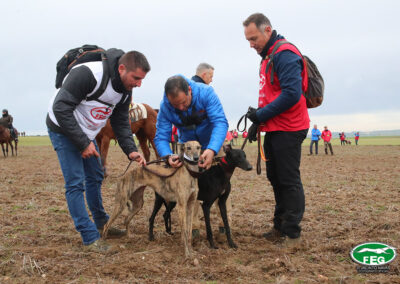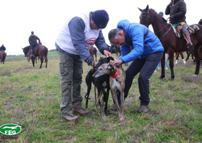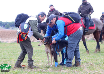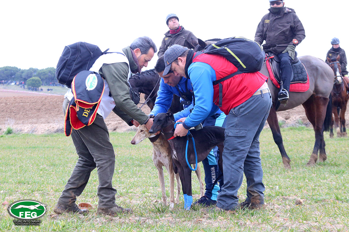 La cita, como viene siendo habitual, las 10:00 h en las que el comité de profesionales veterinarios pasarían reconocimiento a las perras protagonistas. Tras el mismo se constataba que todas disponían de una buena salud para enfrentarse a las liebres castellanas.