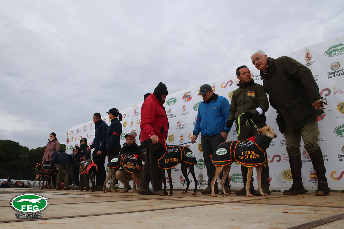 A las 10:30 h se presentaban a los más de 20.000 personas las protagonistas y poco después, la mano se iba iniciando para buscar las liebres navarresas que iniciaran la competición. Debemos destacar la multitud de aficionados que llegaron hasta Nava del Rey venidos desde todos los punto geográficos de España, que aprovechaban el viaje como todos los años para convivir con aficionados a este deporte y compartir experiencias de toda la temporada galguera. La carpa de la Cuesta de Los Picos, estaba abarrotada y el mirador lleno de público, como hacía muchos años que no se veía.