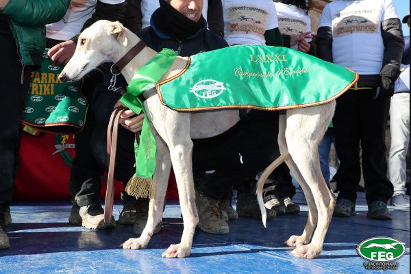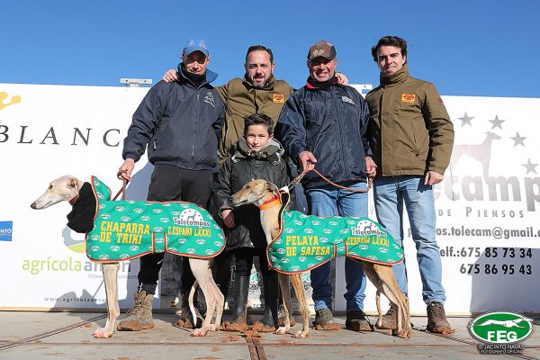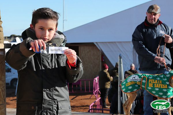 A las 10:30 horas, Directores de Carrera y veterinarios oficiales revisaban a las dos finalistas certificando su aptitud para la prueba funcional que iban a disputar, que no era otra que la gran final del LXXXI Campeonato de España de Galgos en Campo copa de S. M. “El Rey”. Seguidamente se daba paso al sorteo de collarines, en el que a Chaparra se le adjudicaba rojo y a Pelaya blanco.