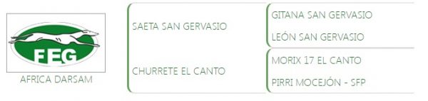 Dos galgos Castellanos, África de Darsán y Rubio de Triki, una andaluza Sorpresa de los Palma y una Castellano Manchega, Pícara de Morix, lucharán por la manteleta y la corbata nacional que visten al mejor galgo de España.