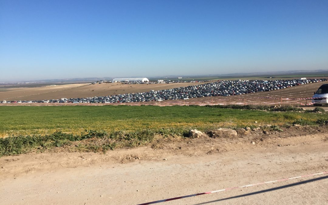 Las 9:00 horas era la cita para que los galgos participantes pasaran su control veterinario. La afición iba llegando al corredero del Arenoso de forma escalonada sin grandes atascos y poco a poco iba llenando el aparcamiento habilitado de forma impecable por la organización. Según datos oficiales de Protección Civil, entorno a 7.000 vehículos y más de una treintena de autocares eran contabilizados a lo largo de la mañana, lo que supone una estimación de más de 25.000 personas para la primera jornada de estos octavos de final.