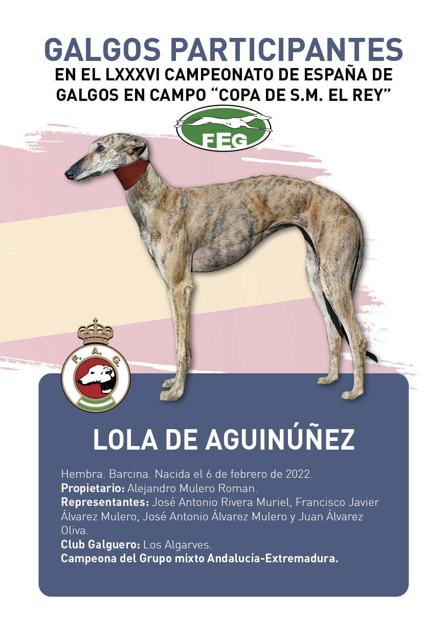 PARTICIPANTES LXXXVI CAMPEONATO DE ESPAÑA DE GALGOS EN CAMPO COPA S.M. EL REY: