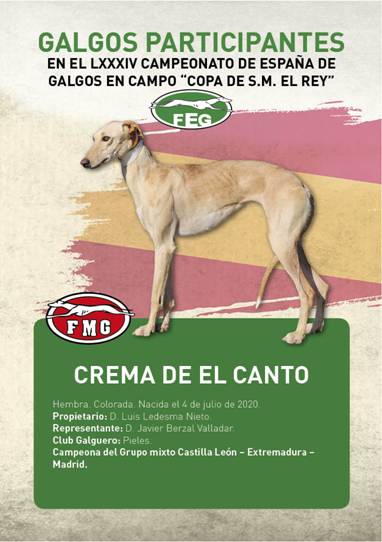 PARTICIPANTES LXXXVIII CAMPEONATO DE ESPAÑA DE GALGOS EN CAMPO COPA S.M. EL REY: