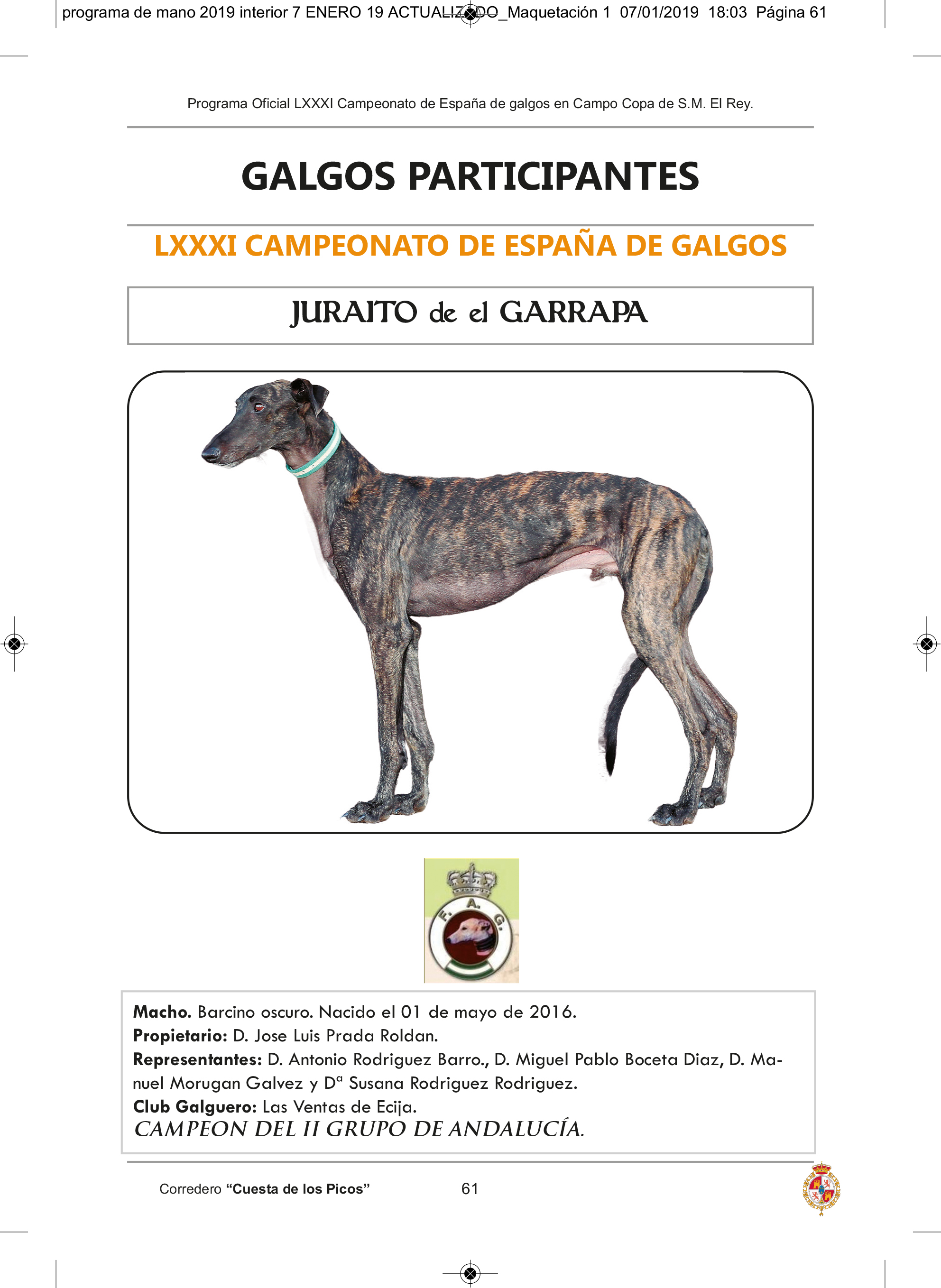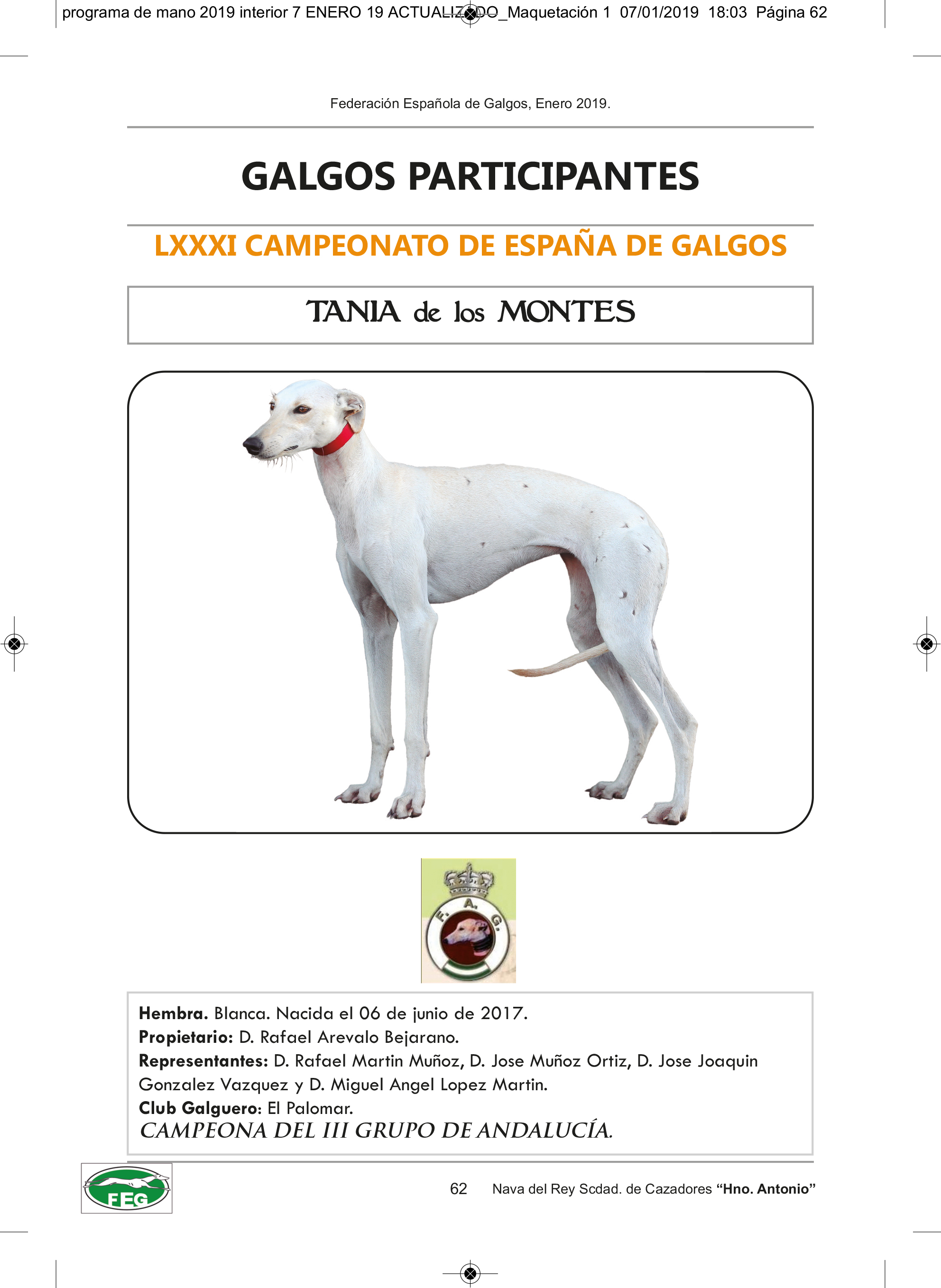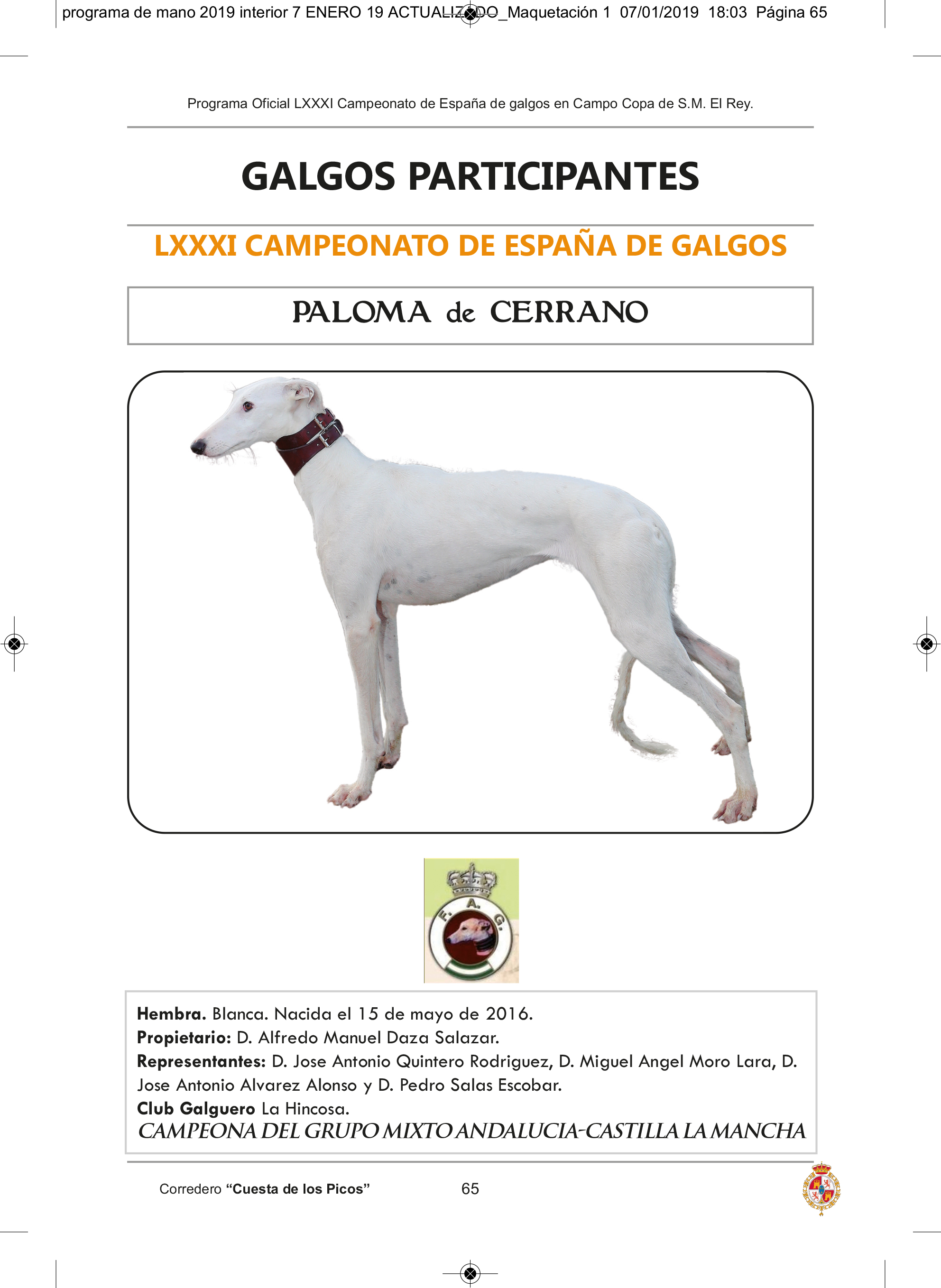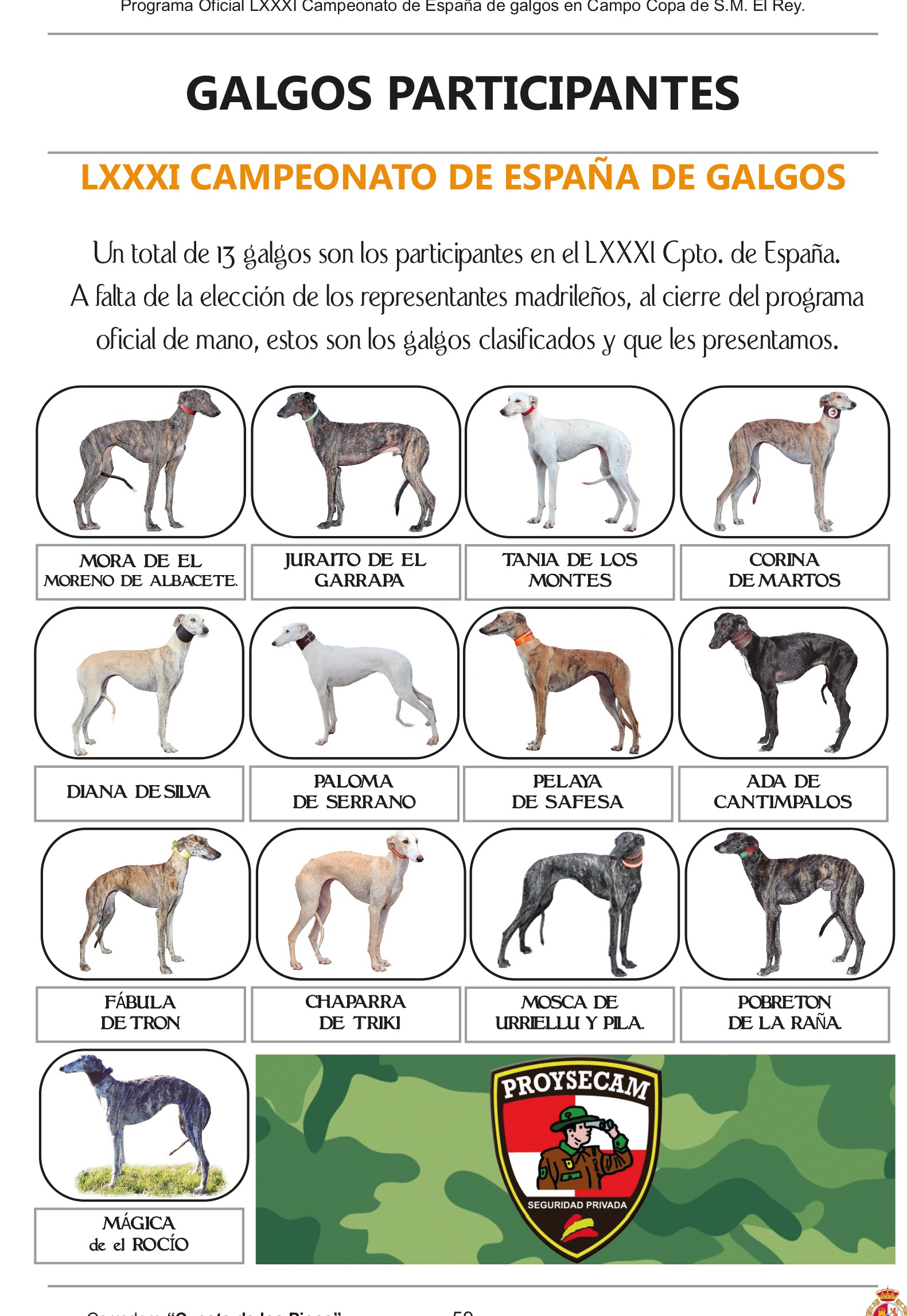 PARTICIPANTES LXXXIII CAMPEONATO DE ESPAÑA DE GALGOS EN CAMPO COPA S.M. EL REY:
