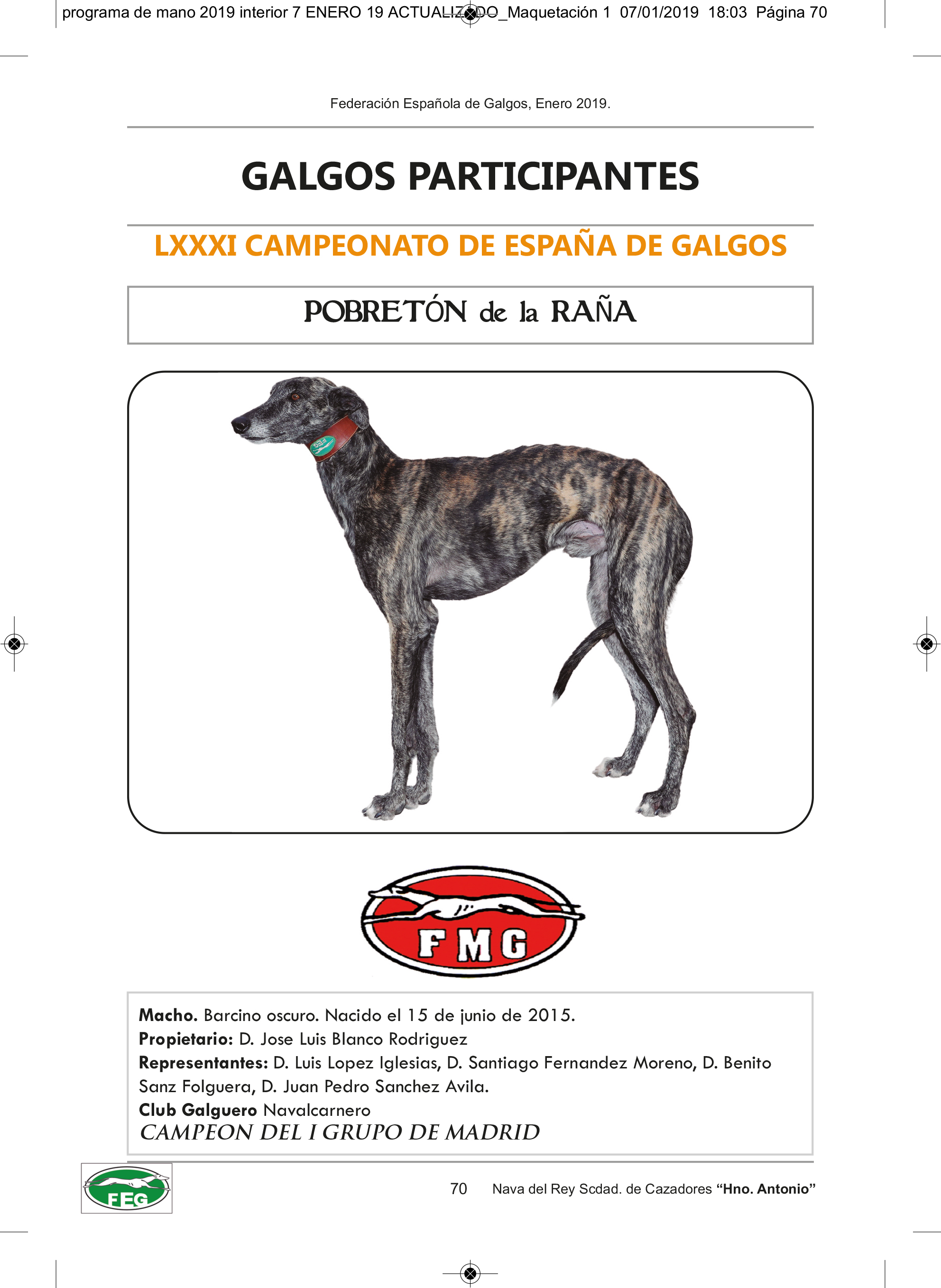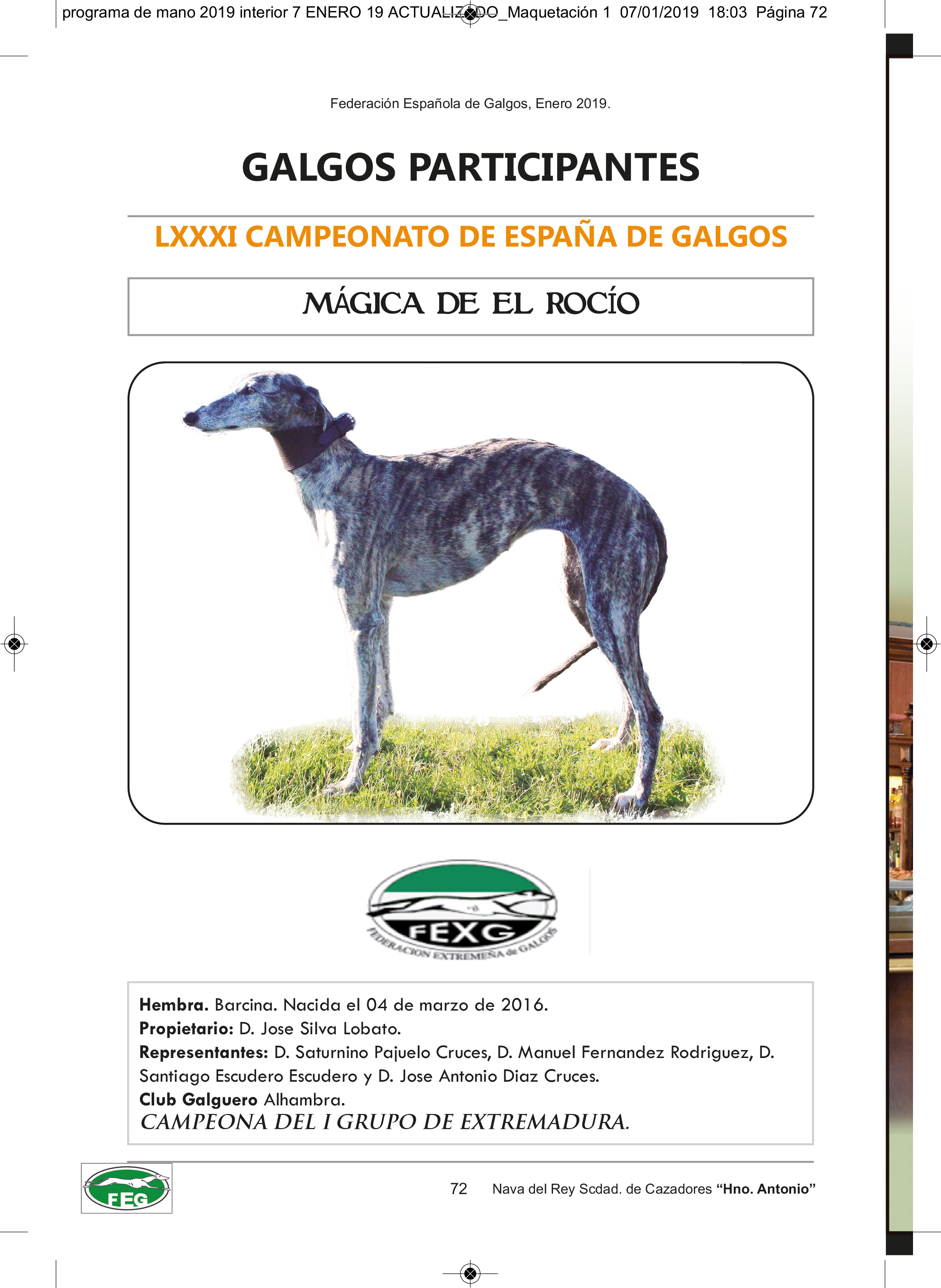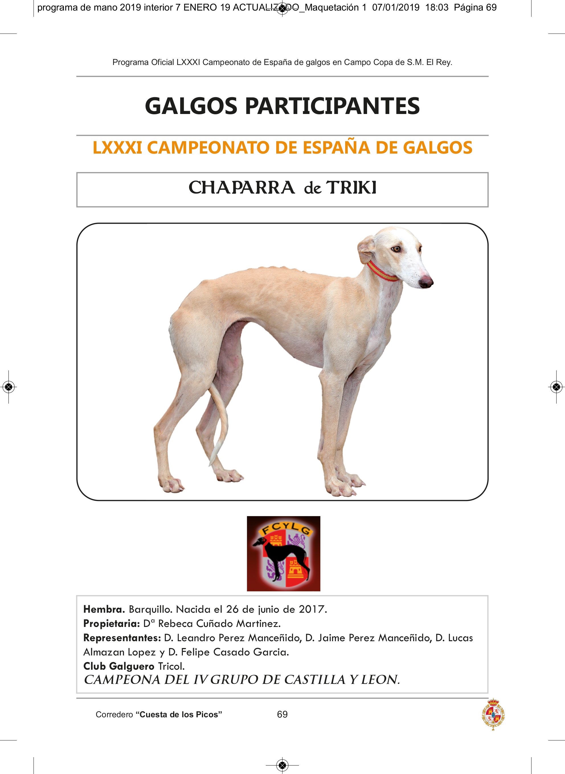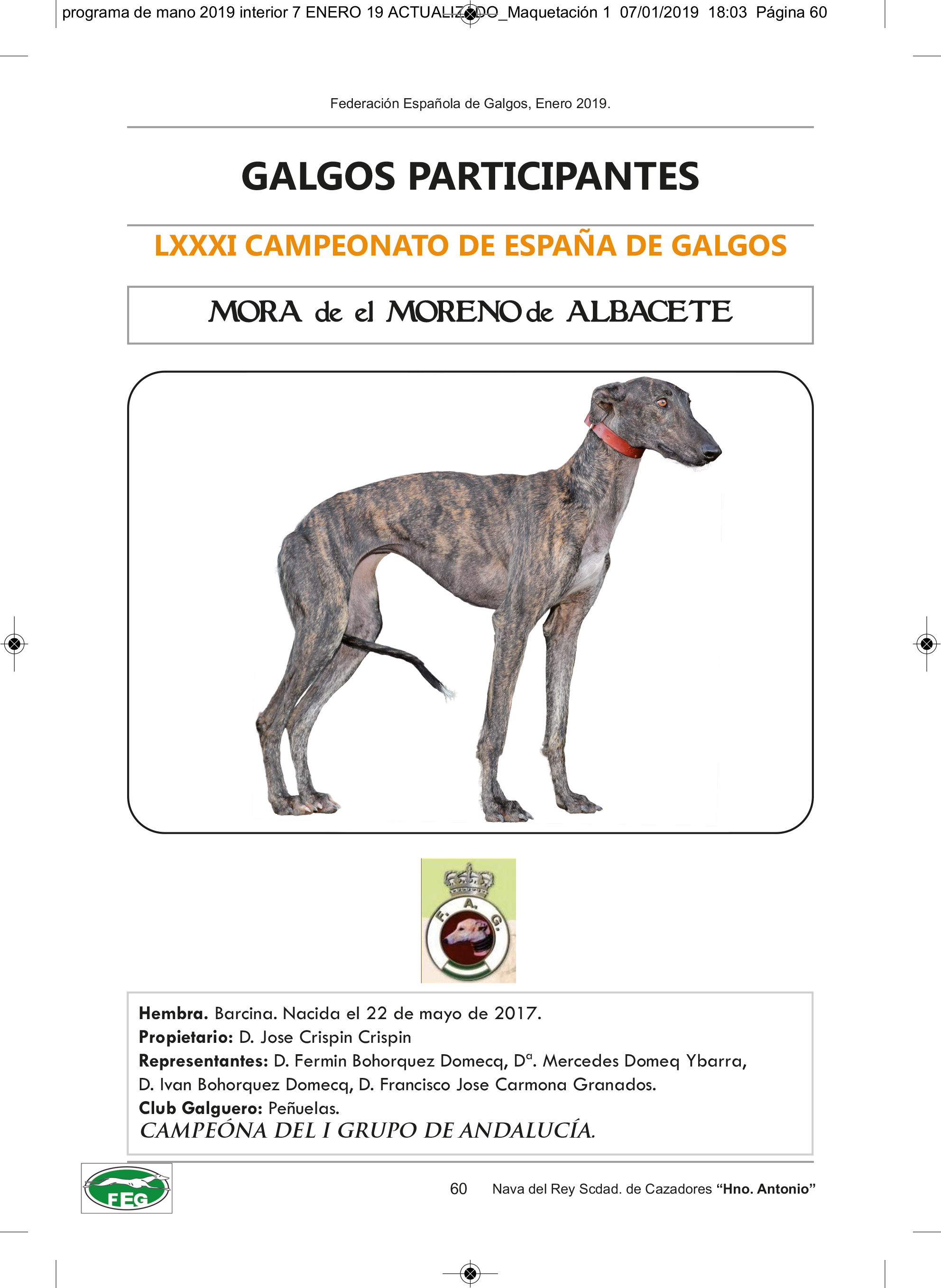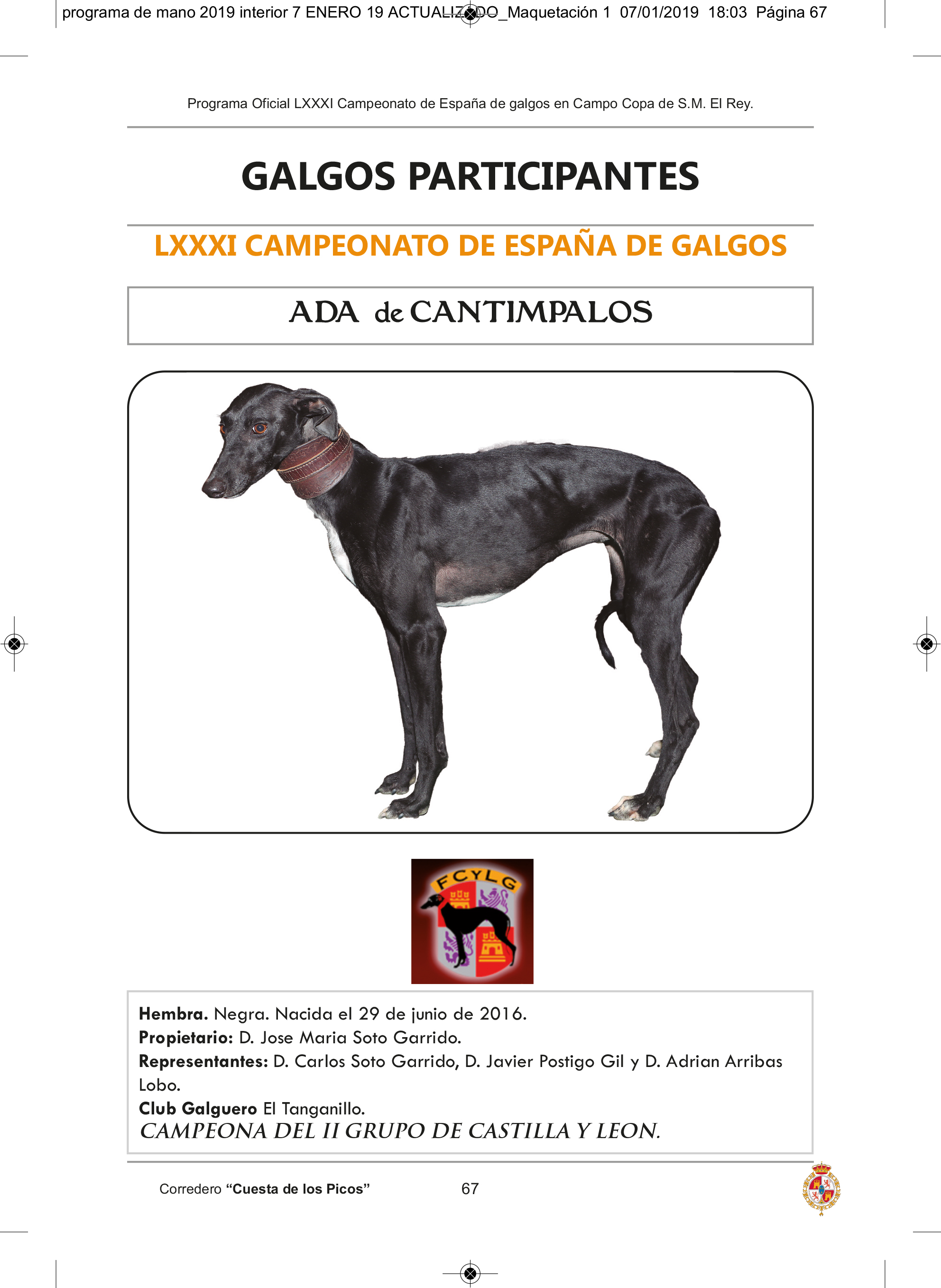 PARTICIPANTES LXXXIII CAMPEONATO DE ESPAÑA DE GALGOS EN CAMPO COPA S.M. EL REY: