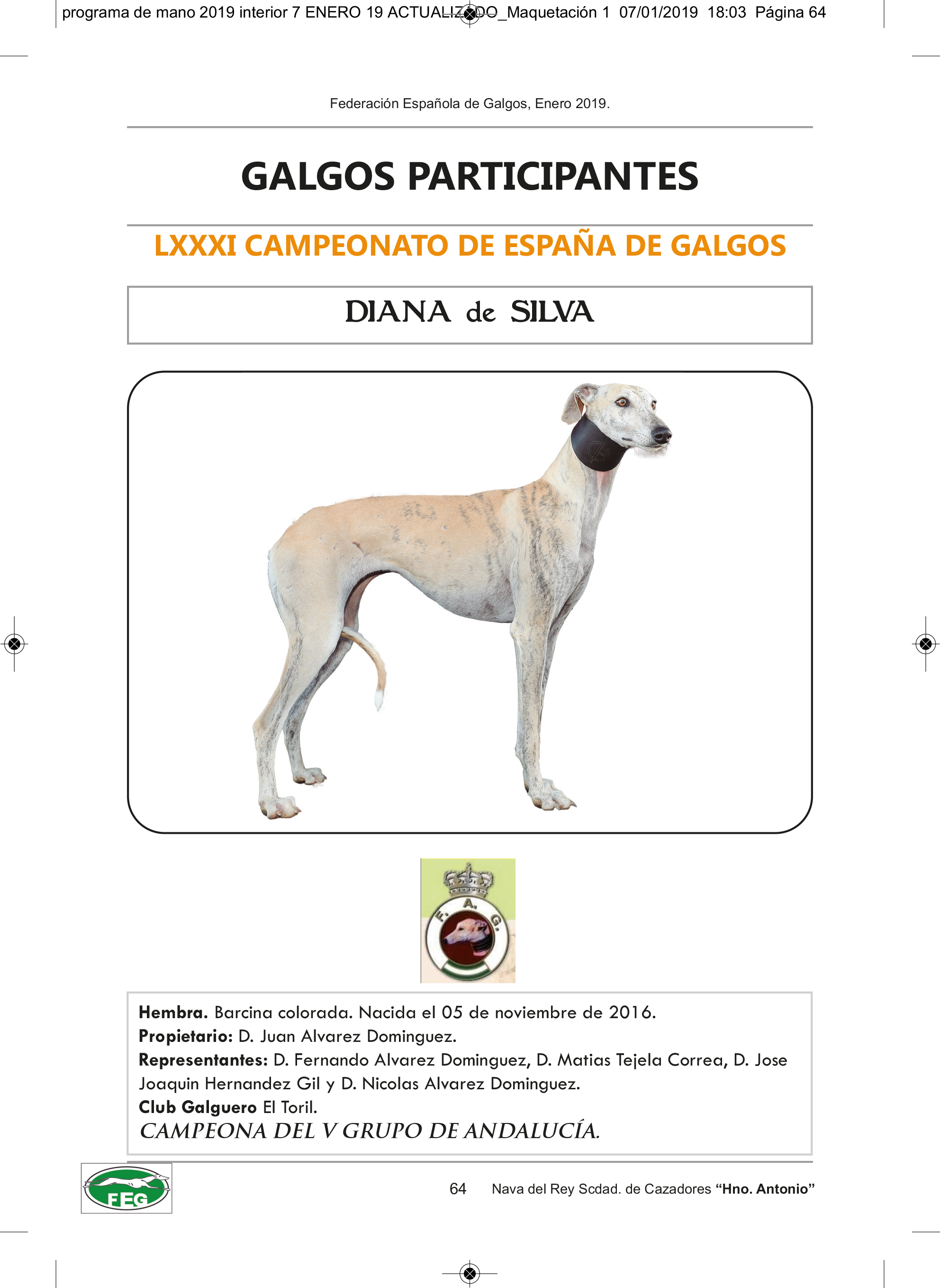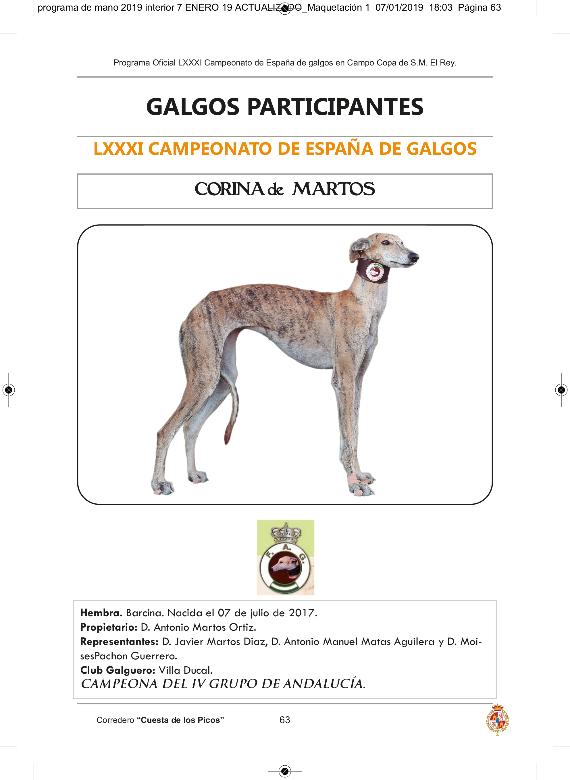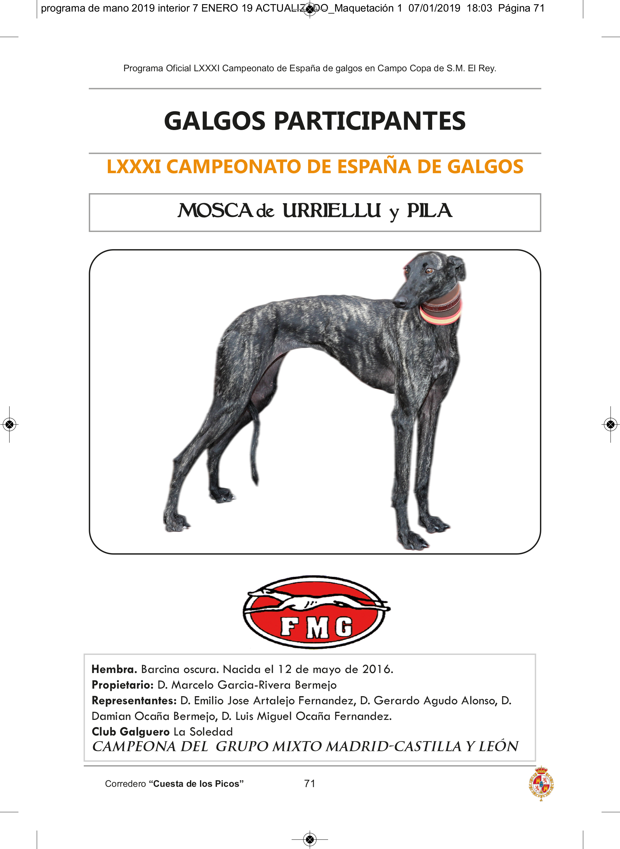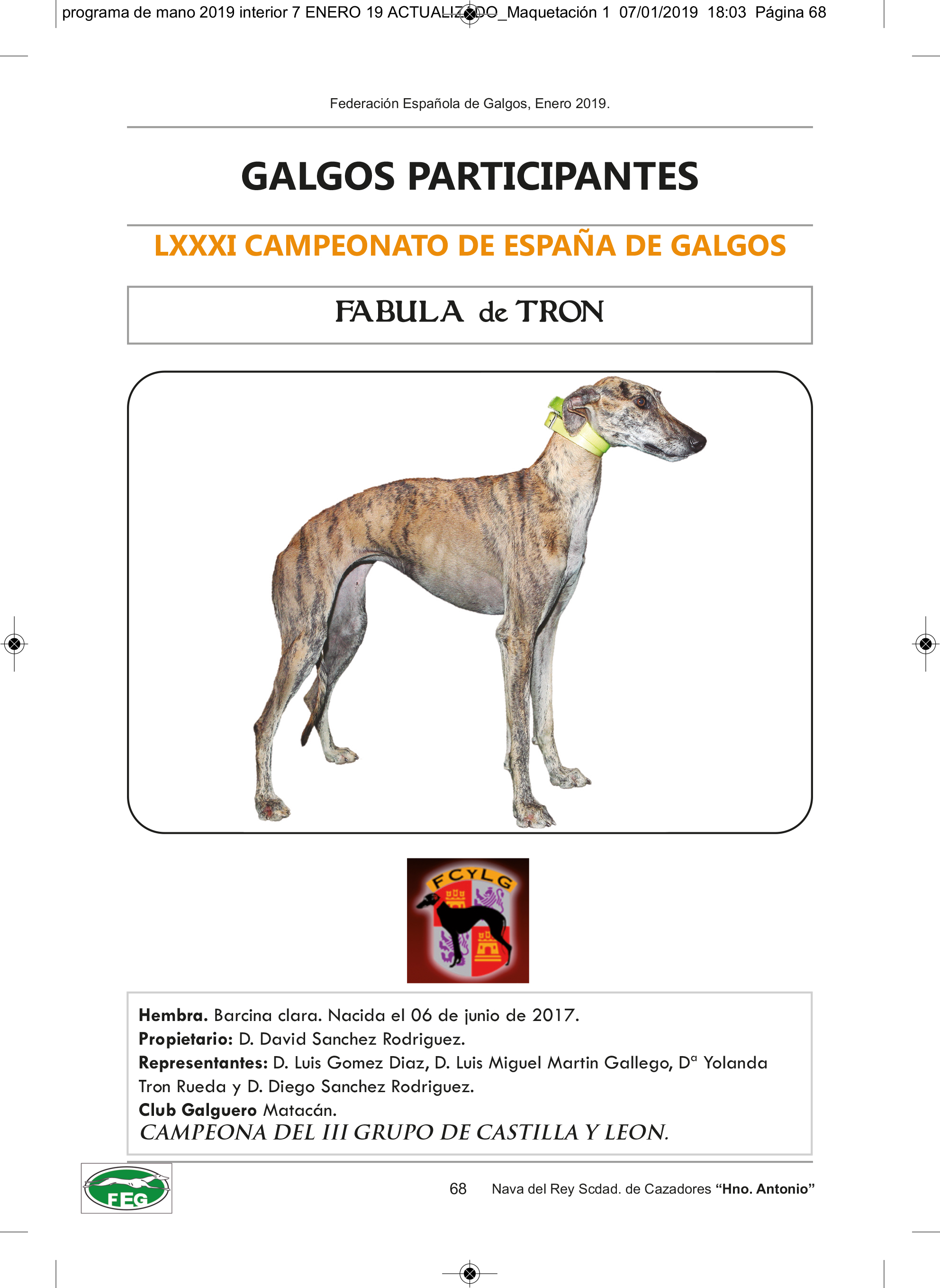 PARTICIPANTES LXXXIII CAMPEONATO DE ESPAÑA DE GALGOS EN CAMPO COPA S.M. EL REY: