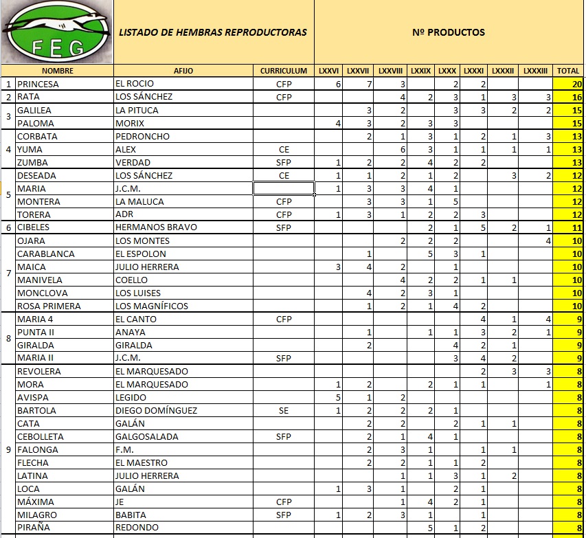 Poco a poco se van sucediendo los años y poco a poco se van dilucidando las líneas, tanto de hembras reproductoras como de sementales, que más productos están dando en competición desde sus fases previas. Se entiende que los galgos que se han presentado a las fases previas del Campeonato de España, han sido seleccionados de entre muchos otros ejemplares y que por tanto dicha selección está sirviendo para valorar en mayor o menor medida determinadas líneas de cría.