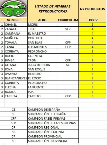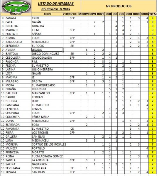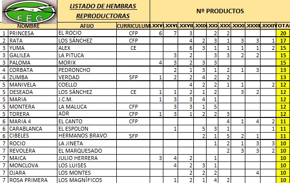 Hoy vamos a presentar el Ránking de las hembras reproductoras, tanto de la presente temporada 20201/2022 como el TOP 10 de la historia del LRO que se instauró en nuestra federación en 2013. Como verán en el top ten de la historia, hay un gran número de hembras que están igualadas en el número de productos y que es justo que los federados tengan esta información, aunque el listado sea mucho más amplio.