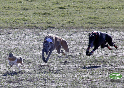 A las 10:00 horas las galgas participantes pasaban reconocimiento veterinario y los facultativos constataban la buena salud de las cuatro galgas. A las 10:30 h se realizaba sorteo público de las dos colleras quedando emparejadas de la siguiente manera: