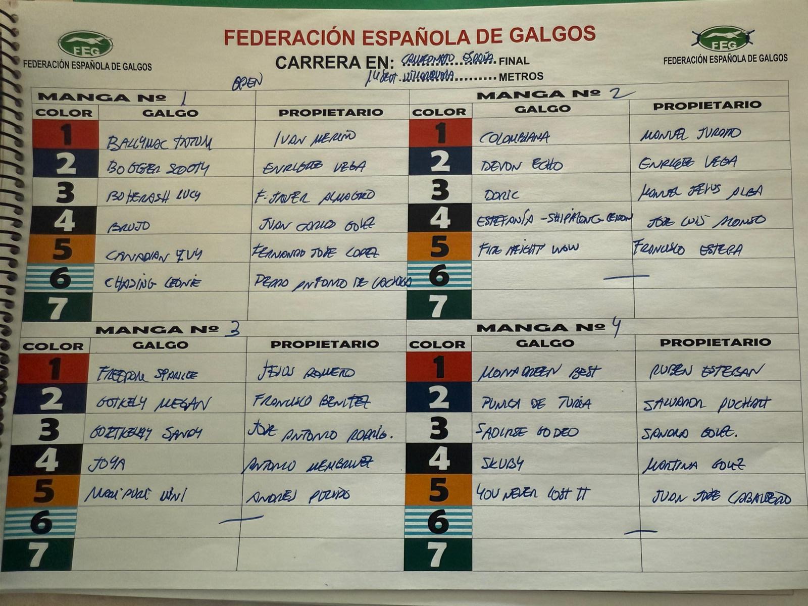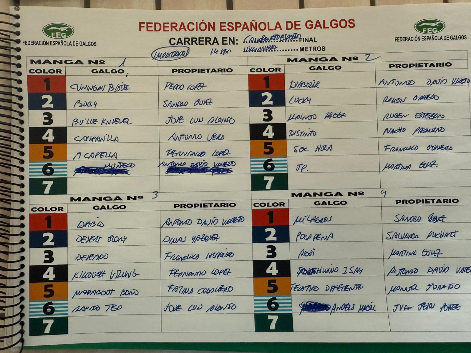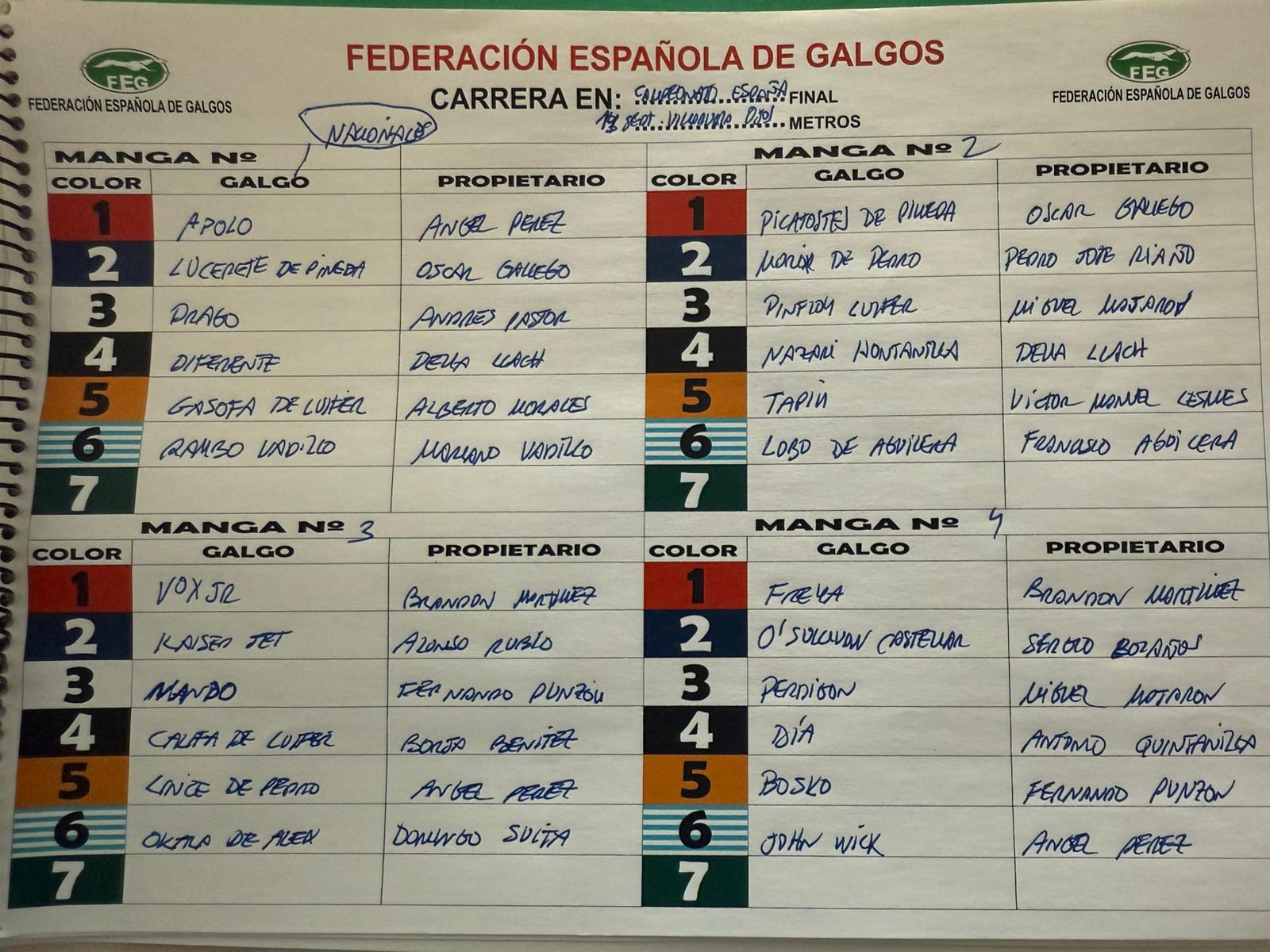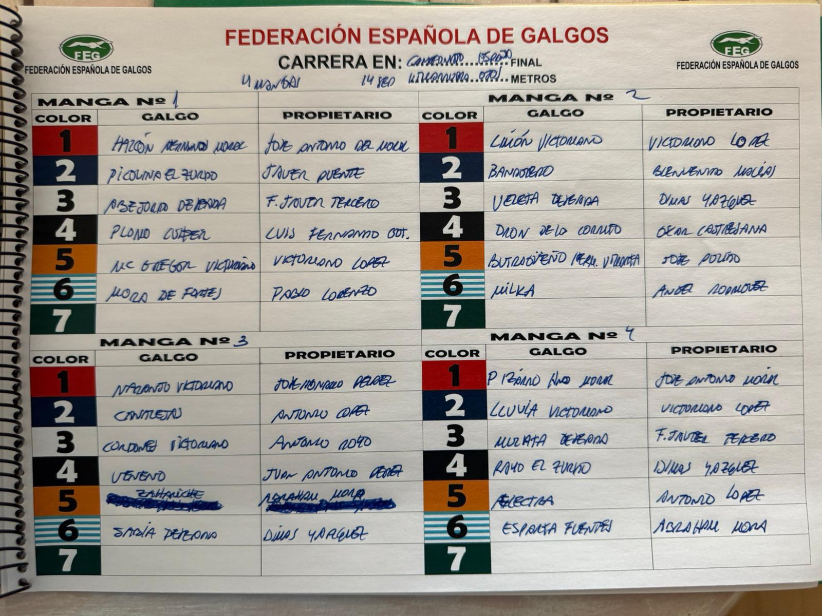 En el día de hoy se ha celebrado el sorteo de las cuatro modalidades de recta, que mañana día 14 se disputarán la manteleta y corbatines de campeones de España.