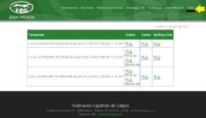 Como saben, es tan sencillo como entrar en el acceso privado (con el usuario y contraseña) de la web de la FEG y picar en la pestaña superior derecha en la que pone expresamente «vídeos». Automáticamente saldrá una tabla como la de la imagen, en la que podremos acceder a los vídeos de los últimos tres nacionales de galgos en Campo.
