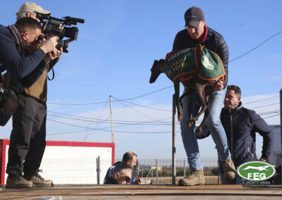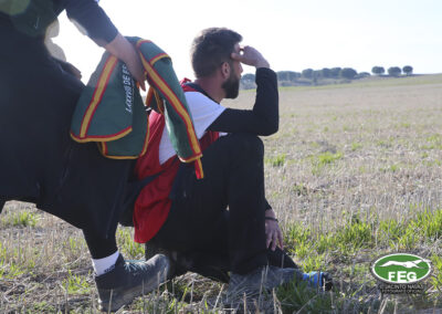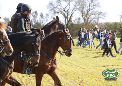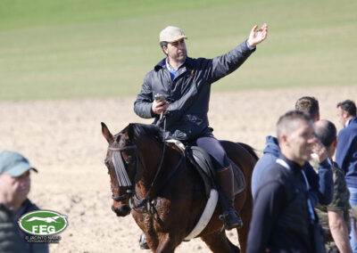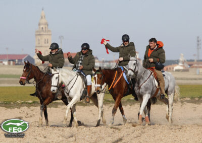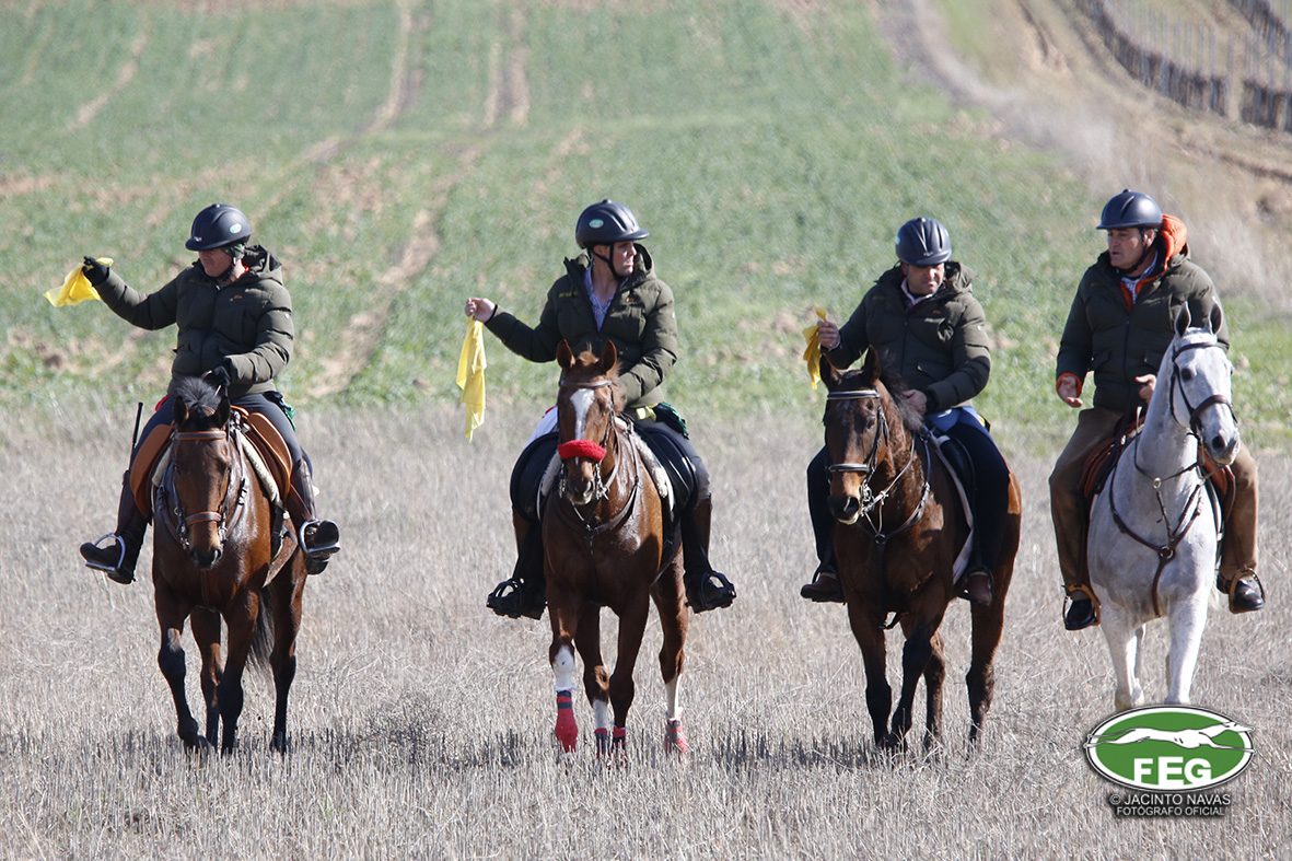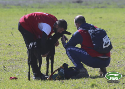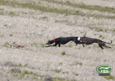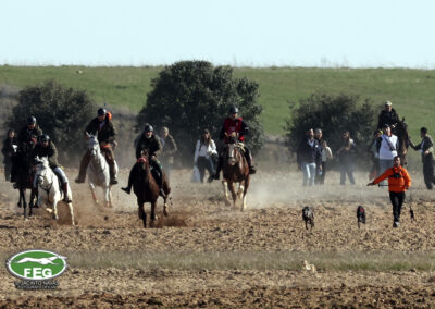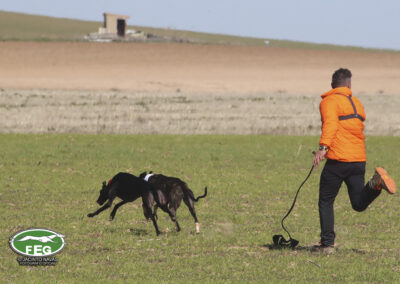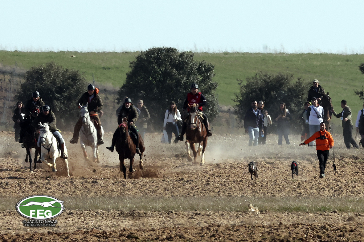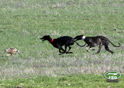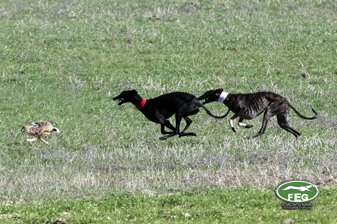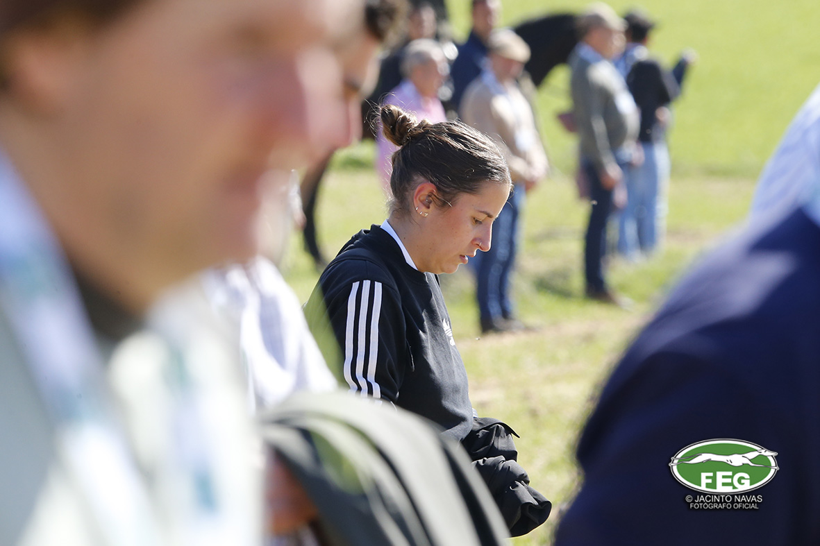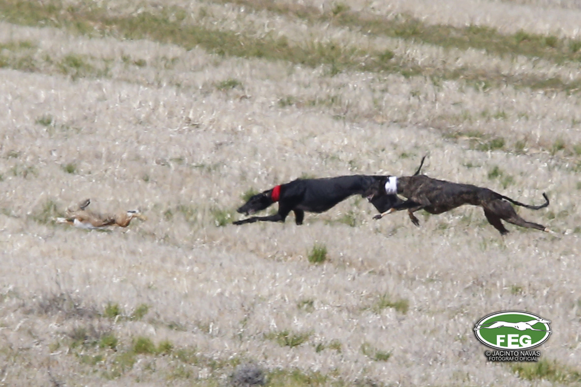 A las 12:50 h la mano echaba a andar y nadie hacia presagiar la final tan épica, como dura que la jornada nos tenía preparada. Tras una primera liebre nula de 35 segundos, que solo servía para calentar a las dos protagonistas de hoy, se correría una liebre muy buena de casi dos minutos que sería nula por falta de criterios de juicio en los cargos actuantes. Sin caso descanso saltaba una buenísima liebre que rondaba los dos minutos y medio que suponía el primer punto para la andaluza que con tres pañuelos rojos conseguía la unanimidad de los cargos actuantes en esa carrera.