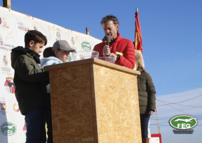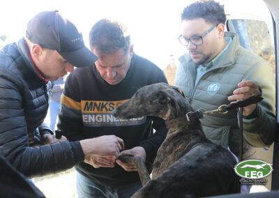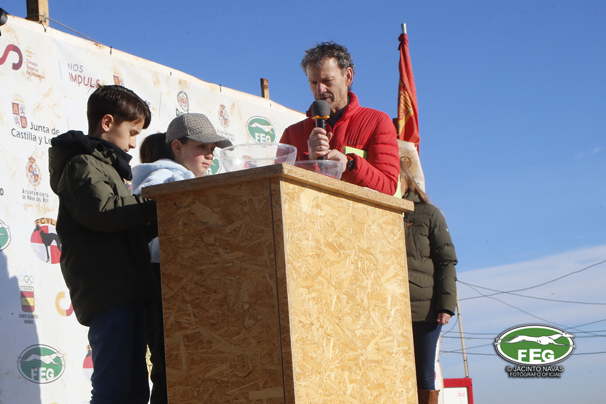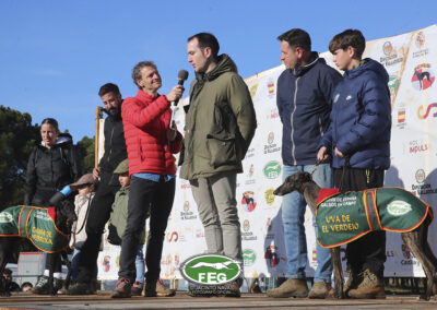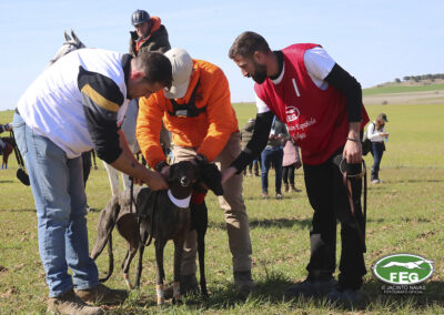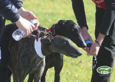A las 10:00 h y con una afluencia constante del numeroso público, las dos protagonistas pasaban reconocimiento veterinario sin ningún problema y después de sortear los collarines, las galgas eran presentadas al numeroso público asistente.